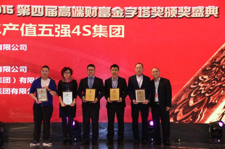 1月10日,由中国汽车后市场总会主办,点金国际传媒与玩车网共同协办的第四届 “索菱杯”中国汽车后市场2015年度高端财富金字塔奖颁奖盛典在深圳举行。盈众汽车集团荣获“年度优秀精品运营十强4S集团”及“年度精品单车产值五强4S集团”荣誉。联合车尚董事长吕惠娟作为代表上台领奖,奖项由点金国际传媒掌门人谭荣耀先生颁发。