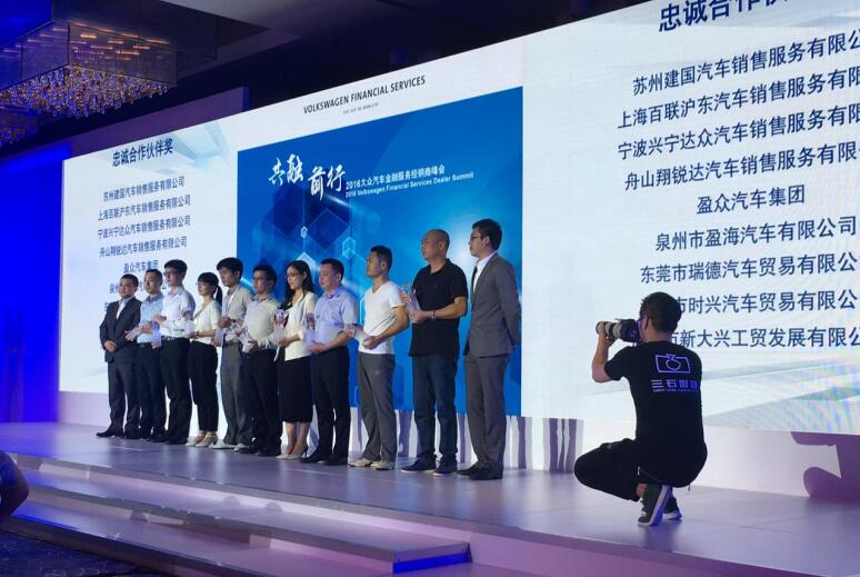 6月14日,2016大众汽车金融上汽大众及斯柯达服务经销商峰会在南京举行,全国近200家经销商参与会议,共同探讨金融服务和产品创新,促进经销商新车及二手车的金融业务发展。盈众汽车集团是全国唯一获得“忠诚合作伙伴奖”的经销商集团,集团旗下多店被授予各项荣誉。泉州盈海、漳州致和获得“忠诚合作伙伴奖”,厦门福海荣获“最佳创新合作伙伴奖”。
