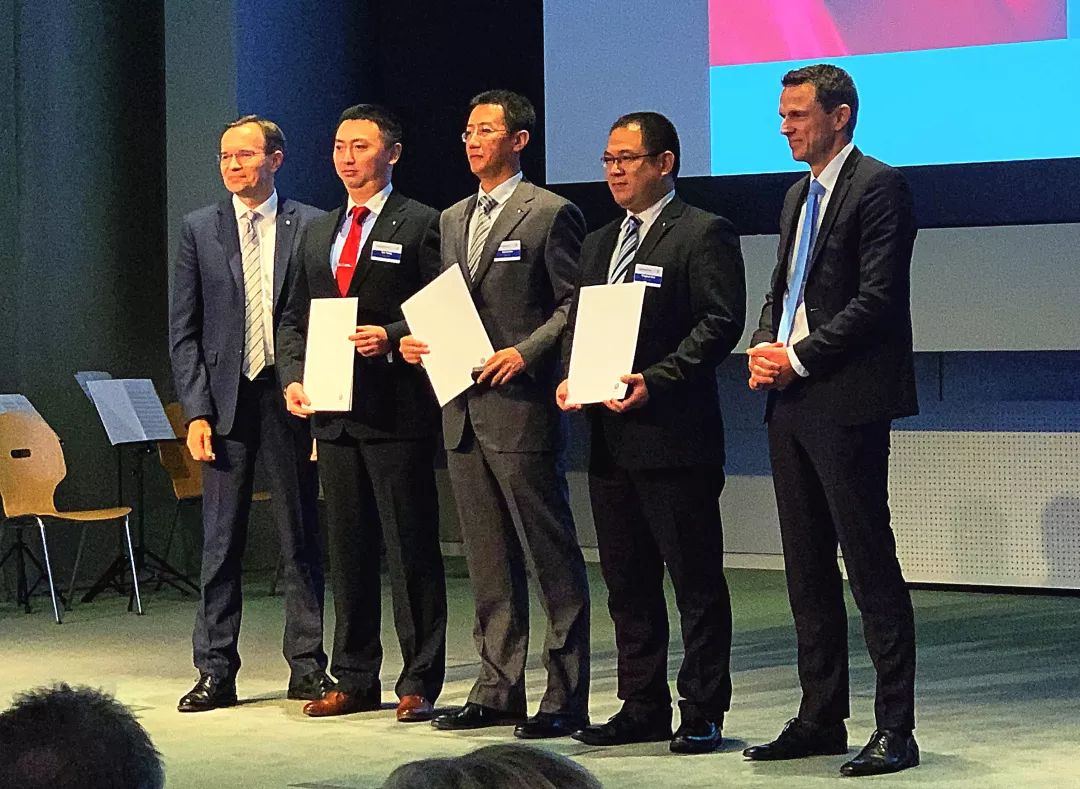 盈众汽车代表孙聘仁、高廷建与大众集团领导及获奖中国经销商伙伴合影留念