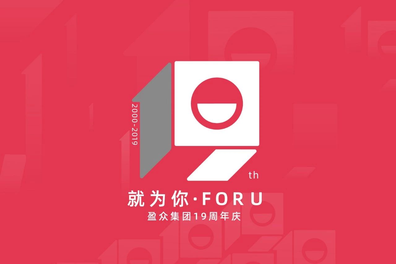 LOGO用“19”拼出了一个魔方形状。魔方的6个面,既象征着盈众业务布局的多样性,也展现了盈众方方面面“就为你”的服务理念。