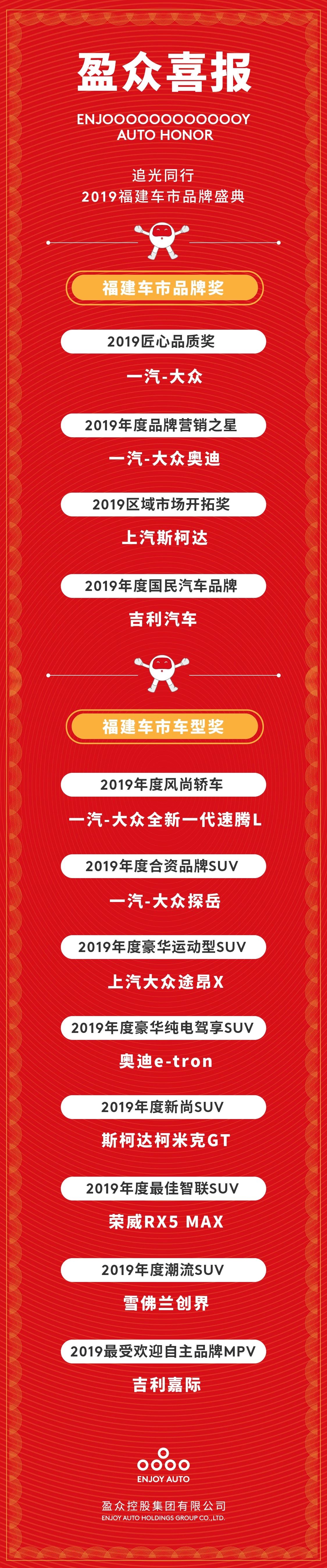 此外,盈众经销的多个品牌、多款车型分别荣获福建车市品牌奖和福建车市车型奖。
