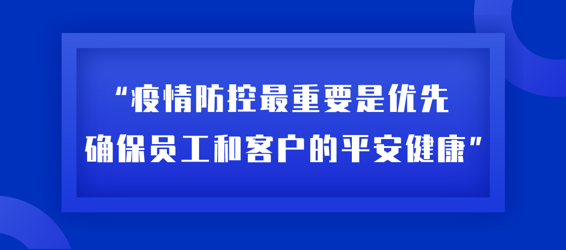 张总多次对工作小组强调:“疫情防控最重要是优先确保员工和客户的平安健康”。陈主任表示,基层一线是对外服务的窗口,是防控工作重中之重,集团全体同仁多一分担当,员工的安全就多一分保障,我们的客户和家人就多一分安康。