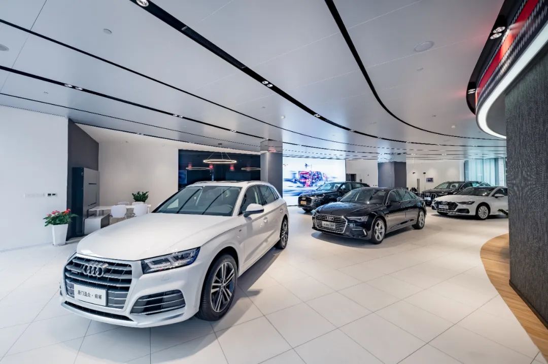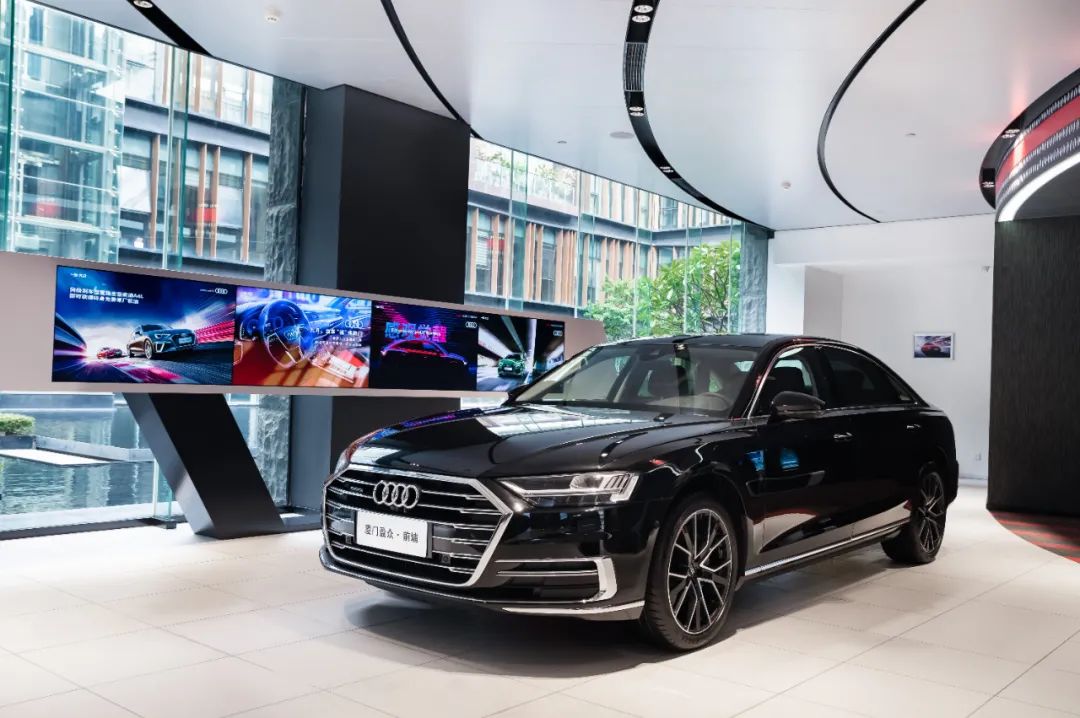八块科技感十足的大屏所吸引,它们将生动呈现奥迪品牌全系车型。展厅内还设有