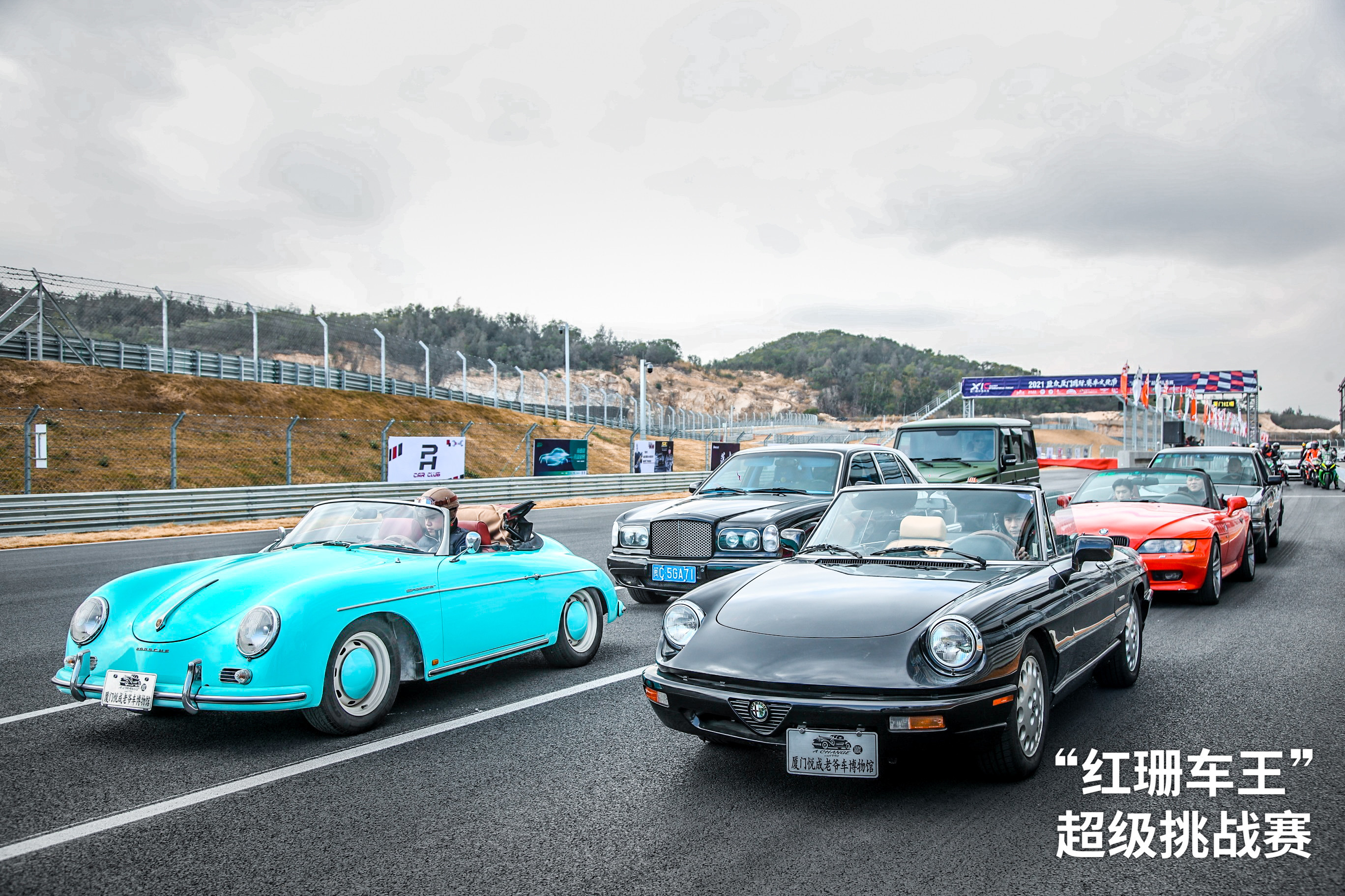 开幕式上,来自悦成老爷车博物馆的七台老爷车格外吸睛。年近百岁高龄的福特A型车、迈过古稀之年的保时捷356、阿尔法·罗密欧Spider、宝马Z3、丰田皇冠、奔驰G级、宾利跨过岁月风云,再次驰骋赛道。