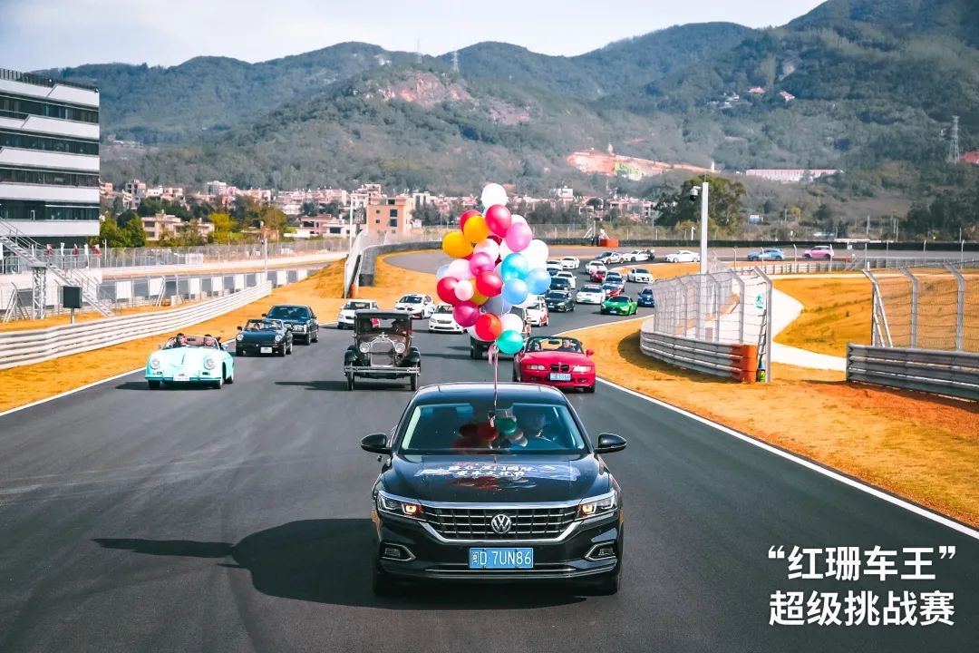 在领航车上汽大众帕萨特的带领下,赛道巡游震撼上演。由老爷车、摩托赛车、专业赛车、盈众“红珊车王”超级挑战赛赛车组成浩浩荡荡的车队,在厦门国际赛车场的赛道上绕场巡游,赛车队伍炫酷亮眼、整齐壮观,形成一道亮丽的风景线。车手们用自己独特的方式,在赛道上留下了色彩斑斓的硬派浪漫。