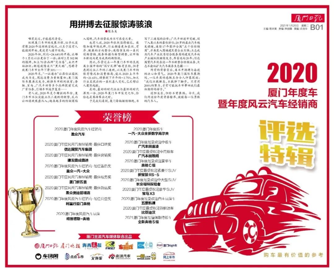 盈众荣获“2020厦门年度风云汽车经销商”等多项大奖
