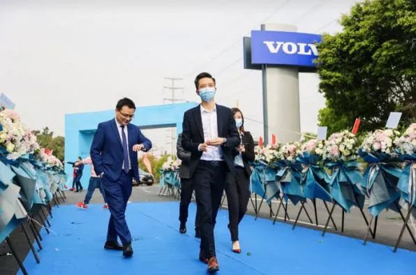沃尔沃汽车大中华区销售公司南区总监梁学志、经销商网络发展高级经理万维巍、经销商网络发展南区区域经理黄训华、南区销售区域经理皮先波,盈众控股集团常务副总裁易远航、副总裁尤猛杰、盈众红鼎集团董事长邱晨阳,以及福建省晋江市新塘汽车销售行业协会会长王清强共同为盈众沃尔沃泉州富沃开业剪彩。