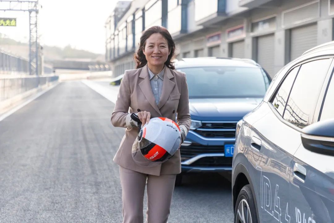窦总同赛道工作人员亲切交流,并亲自驾驶一汽-大众首款纯电SUV ID.4 CROZZ 在赛道上飞驰,尽享赛车运动的速度与激情。