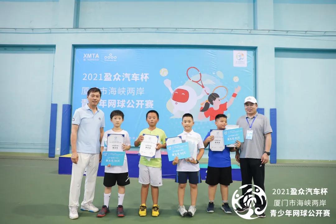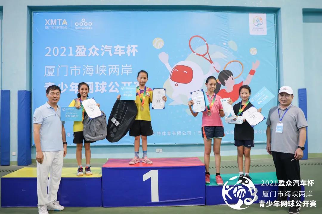 厦门市网球协会党支部书记、秘书长陈瑞春,厦门市爱尼特体育有限公司总经理宋卫星,盈众控股集团品牌传播部总监周薇等嘉宾分别为获奖选手颁奖