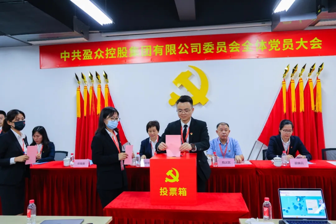 党委换届以无记名投票、差额选举方式,选举出新一届党委、纪委领导班子。郑艺红、陈瑞春、蔡晓云、柳瑞瑜、陈隆龙5位同志当选为中共盈众控股集团有限公司委员会新一届委员。陈瑞春、蔡晓云、李碧霞3位同志当选为中共盈众控股集团有限公司纪律检查委员会新一届委员。大会休会期间,党委、纪委分别召开党委、纪委第三届第一次会议,通过无记名投票,选举郑艺红同志为党委书记,陈瑞春同志为党委副书记、纪委书记。