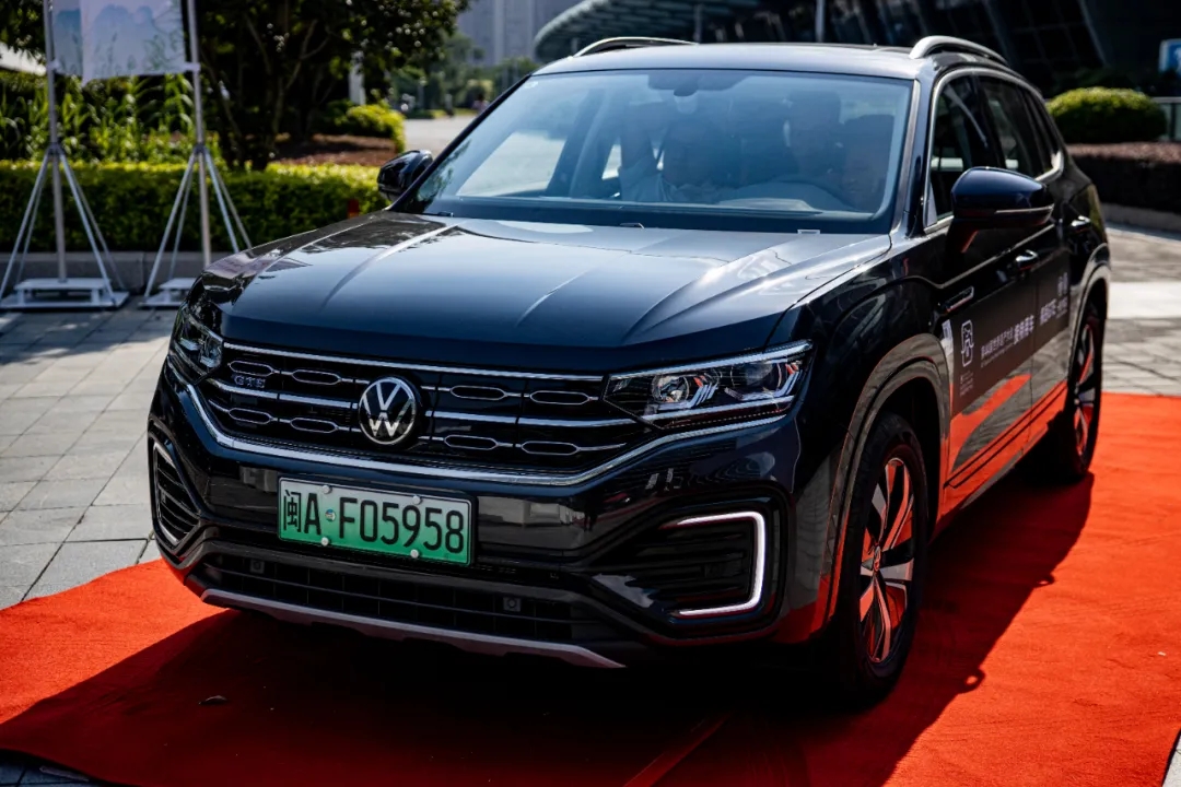 交车仪式上,福州市人民政府副秘书长林强从福州盈众汽车有限公司总经理林晶手中接过启航方向盘,现场整齐划一的全新探岳GTE车队整装待发,正式开始服务第44届世界遗产大会。