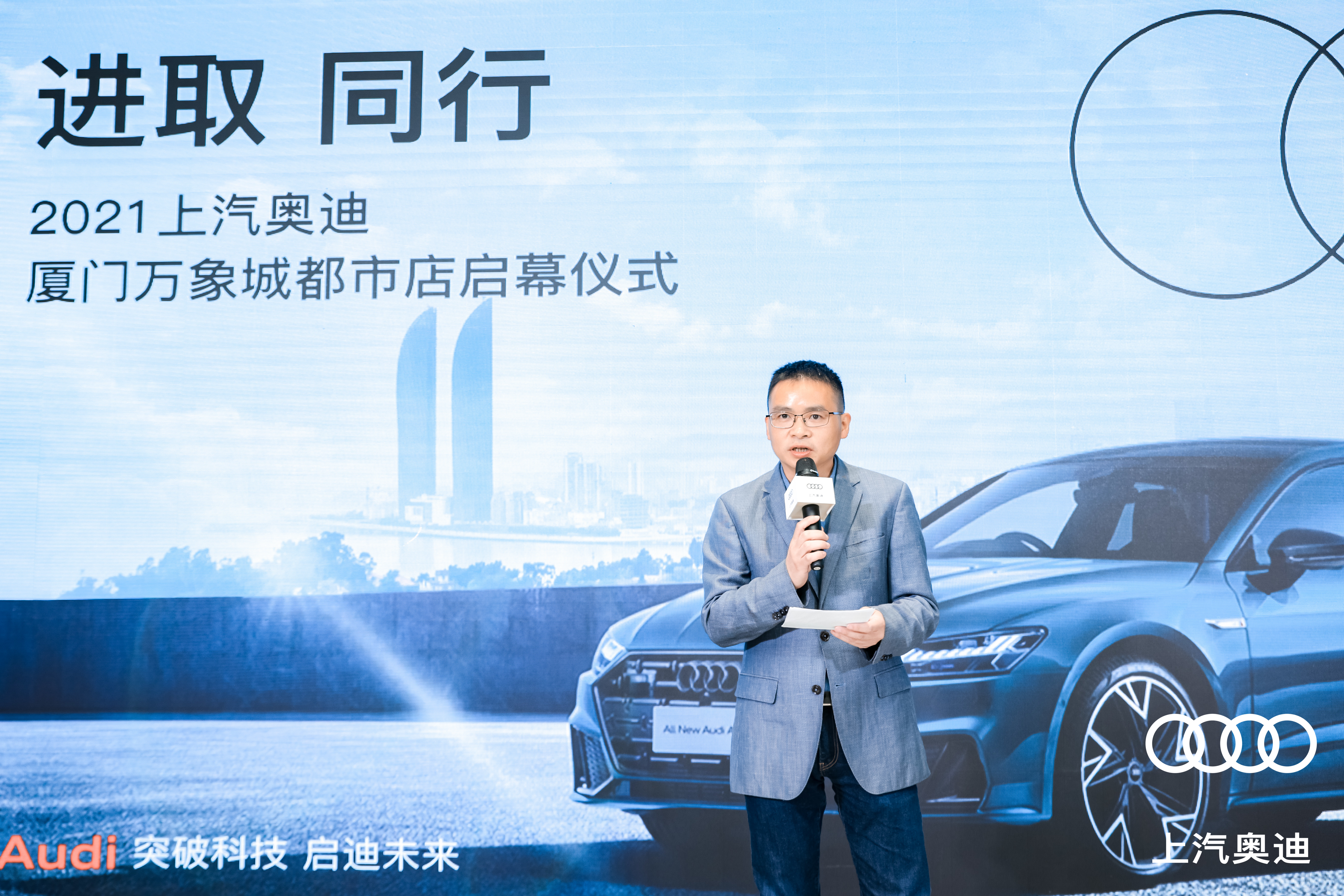 盈众控股集团副董事长孙聘仁对上汽奥迪品牌以及双方未来的合作前景充满信心和期待。“上汽奥迪厦门万象城都市店是盈众集团代理的第一家上汽奥迪都市店,也是福建首家上汽奥迪都市店。从筹建之初,盈众对此就保持着高度重视,旨在通过本店,与上汽奥迪进取、同行,一起放开想象,开创汽车新时代。”孙总在致辞中还强调,“相信厦门万象城都市店的开业,能够为厦门区域客户带来更丰富的购车选择和更美好的车生活体验。盈众上汽奥迪团队,也将积极融入用户生态圈,全面提升用户全生命周期的每一个服务细节,展现出盈众与上汽奥迪的新品质和新温度。”