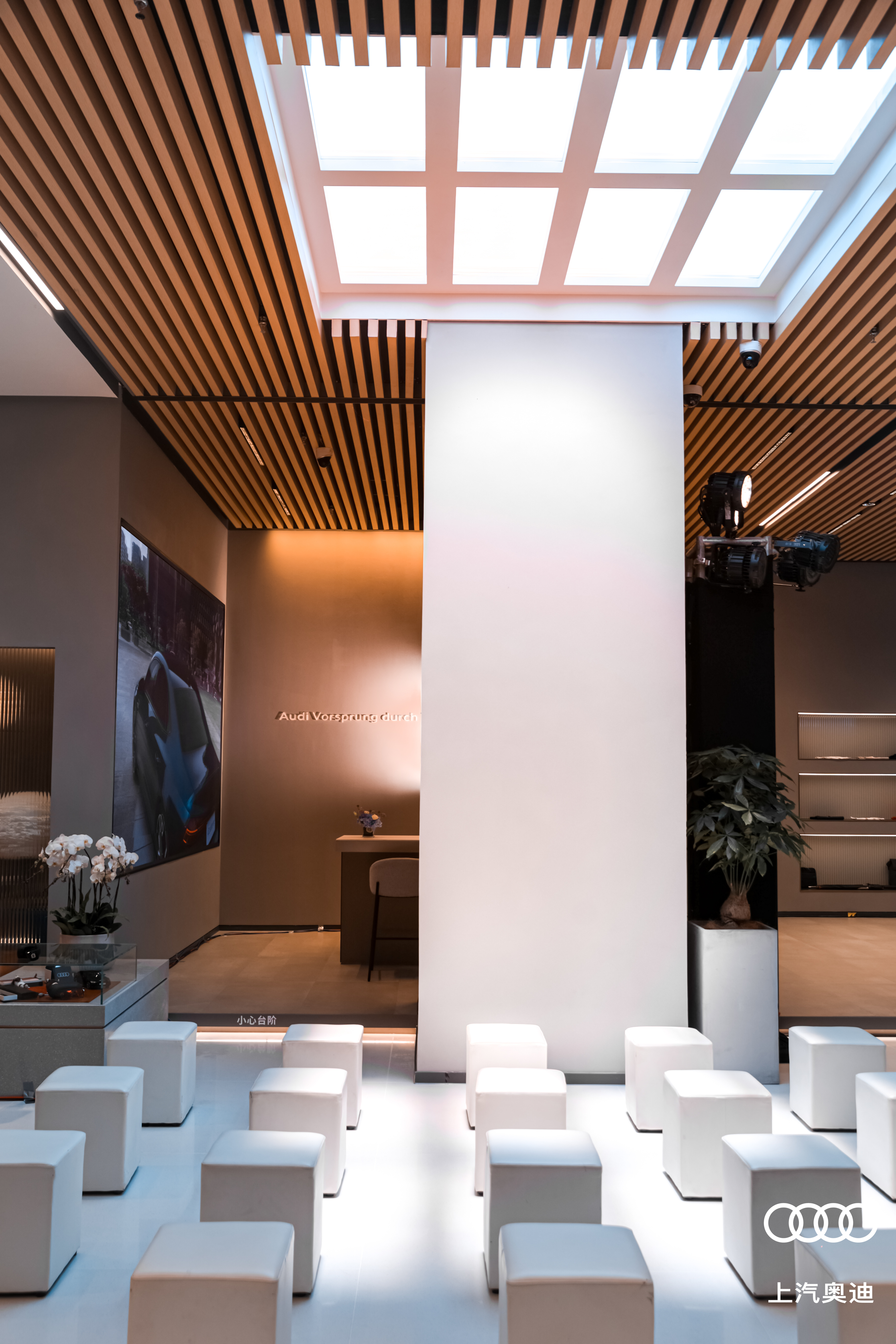 通透的全景落地玻璃,打破了空间的视觉局限,将奥迪品牌的科技感与生活感融为一体。独立划分出Audi Collection精品陈列区,则用年轻人更喜爱、更容易产生共鸣的方式,展现出奥迪品牌所倡导的生活方式和时尚态度。