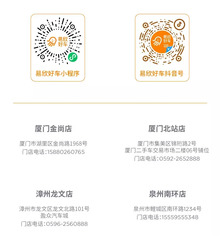 据悉,盈众旗下二手车品牌易欣好车已经在厦门、泉州、漳州等省内重点城市布局品牌连锁店,未来还将立足省内,布局省外,为更多客户提供优质的购车服务。此次全面焕新品牌形象,标志着易欣好车正式迈入品牌化发展新阶段,未来易欣好车将持续坚持以诚信和专业,为消费者带来更优质的二手车交易体验,让二手车交易更简单,让人们的汽车生活更美好。