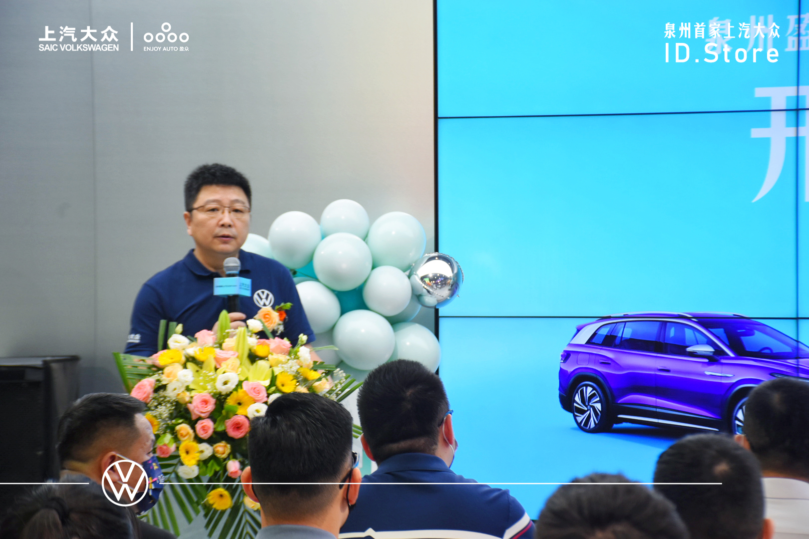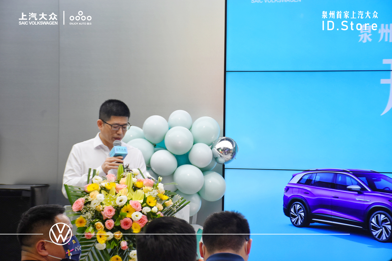 盈众控股集团副总裁陈伟敏代表盈众对见证此次活动的厂家领导、媒体朋友、合作伙伴代表表示欢迎和感谢,他表示,盈众一直都是上汽大众忠实的合作伙伴,此次泉州首家上汽大众 ID.Store的开业,更是盈众携手上汽大众的一次意义非凡的突破。今后,客户在盈众4S店展厅和ID. Store,都能够体验感受“纯电生活”、获取专属的纯电新能源销售服务体验,盈众上汽大众团队也将不懈努力,提升服务标准,提高服务质量,创造更加优质的购车用车体验,希望更多的车主能够加入ID.家族,共创美好出行新生活。
