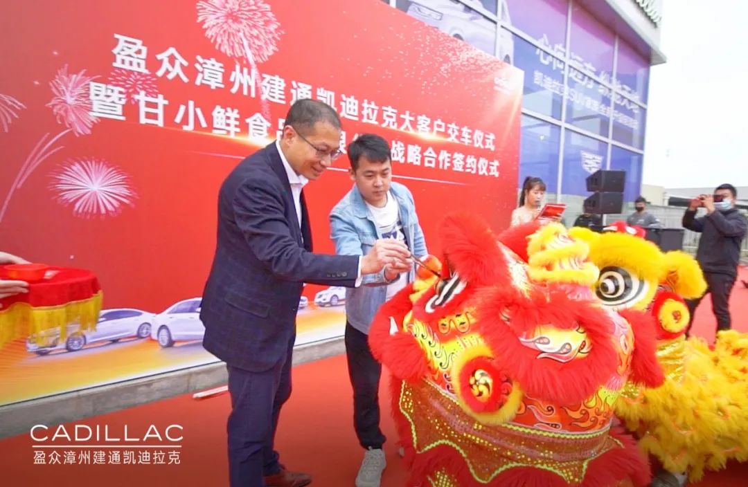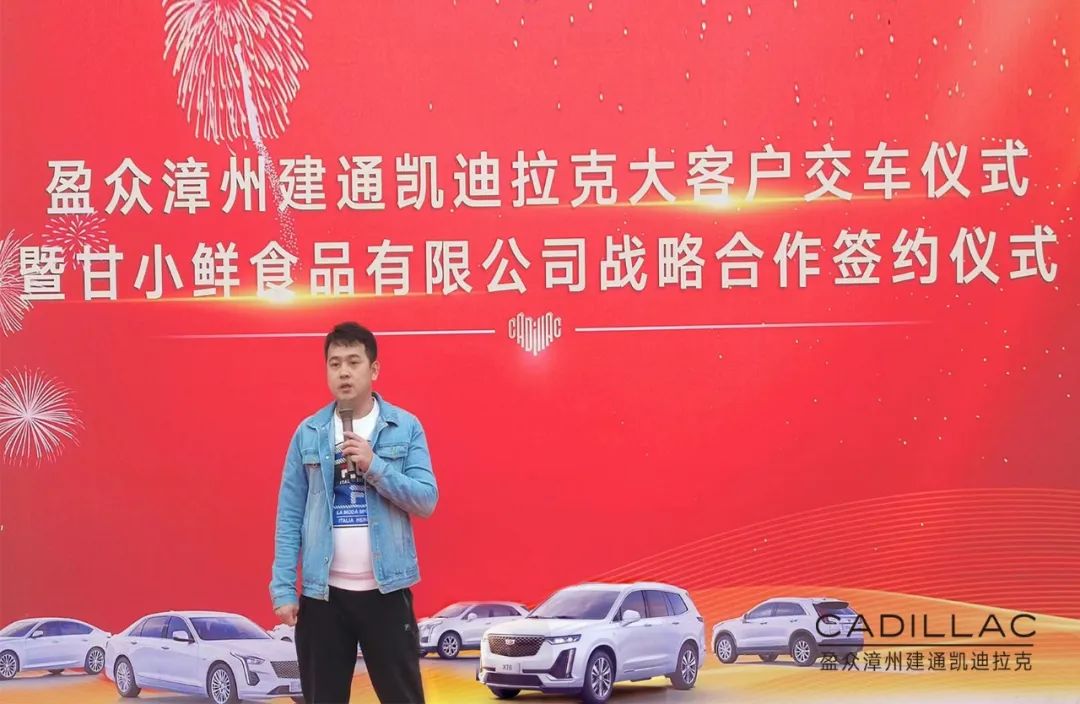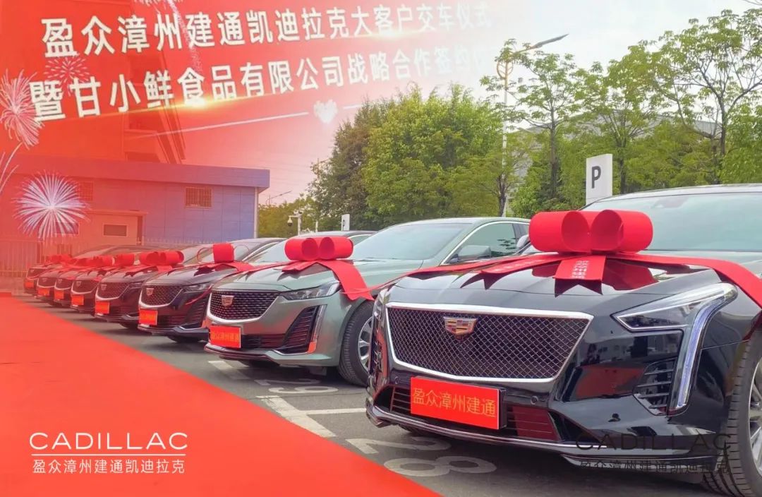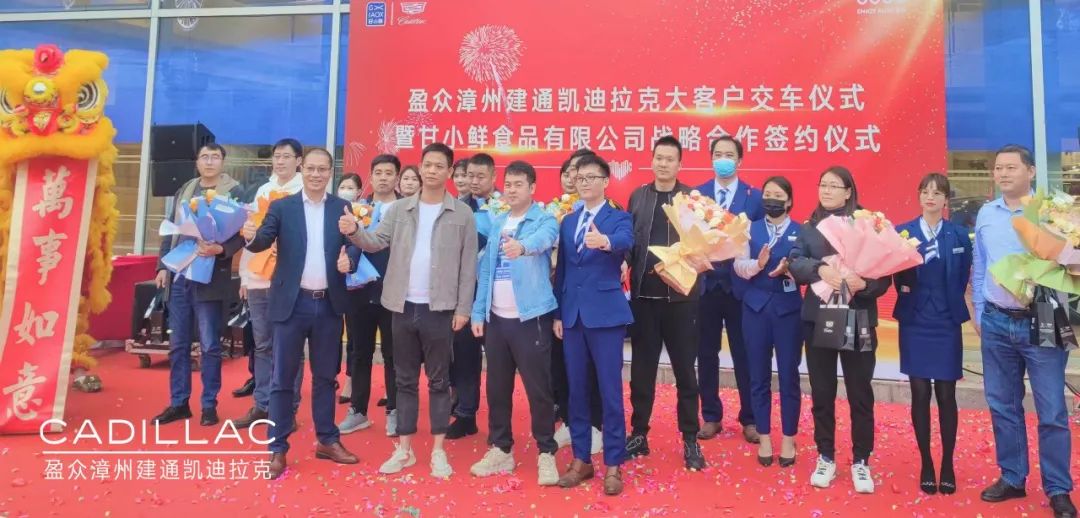 12月12日,盈众漳州建通凯迪拉克与甘小鲜(福建)食品有限公司战略合作签约暨大客户交车仪式在漳州举行,甘小鲜(福建)食品有限公司董事长甘裕勇、总经理常俊岗,盈众集团上汽通用品牌投资人代表林利山、漳州建通凯迪拉克总经理曾蛟龙以及相关业内人士、媒体朋友参加了本次仪式。