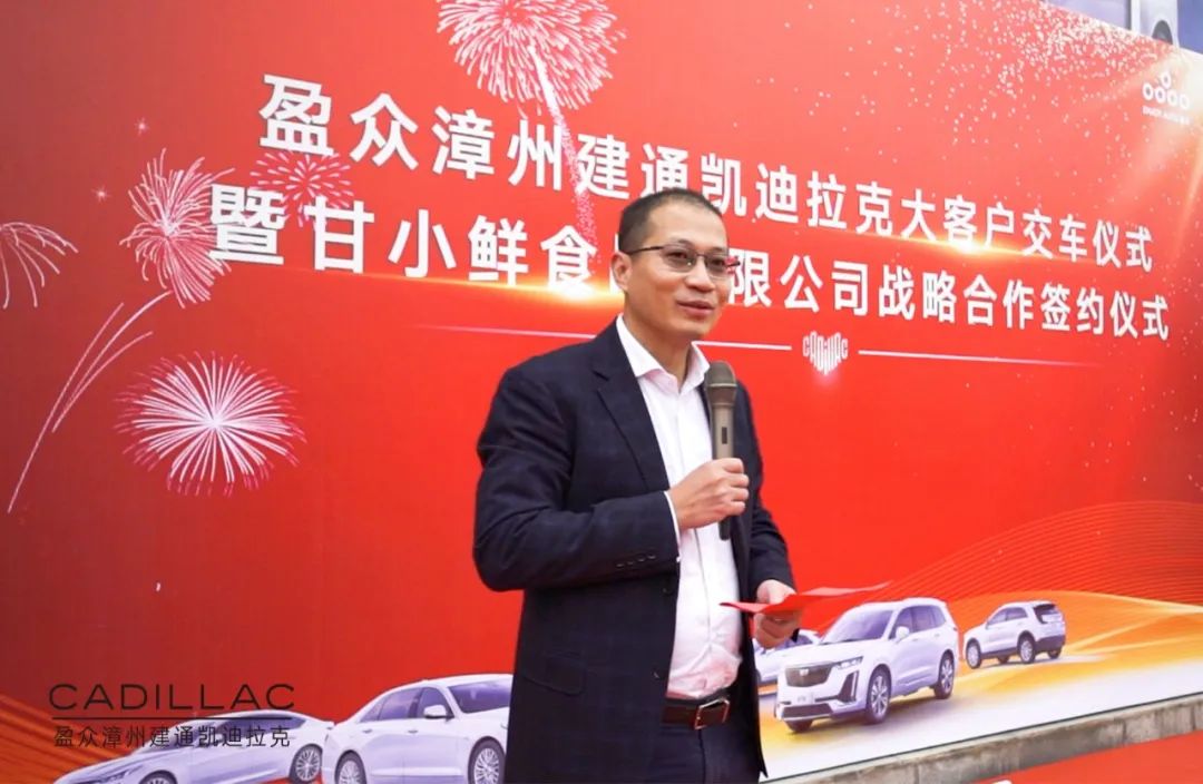 甘小鲜(福建)食品有限公司董事长甘裕勇在仪式上表达了对盈众漳州建通热情周到服务的感谢,并表示此次选择与漳州建通合作,既是出于对凯迪拉克品牌及产品品质的高度认可,更是对漳州建通凯迪拉克服务的极高信任。作为在汽车销售服务领域深耕多年的本土企业,盈众集团是非常值得信赖与合作的,本次合作是一个良好的开端,期待今后双方能够开展更深入的交流和业务合作 。