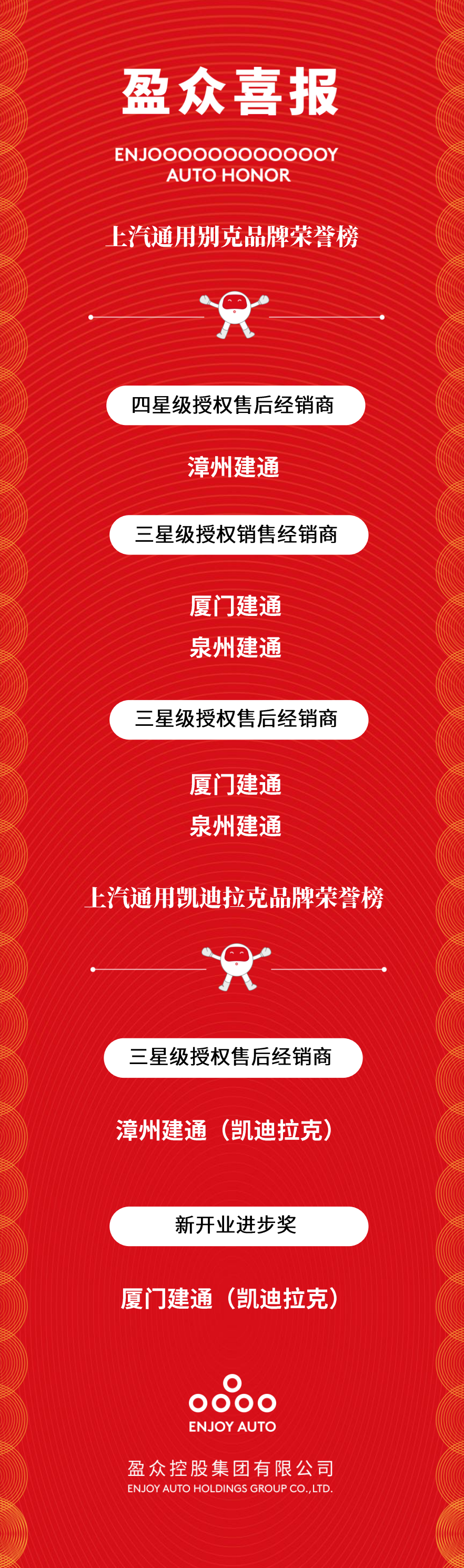 近日,上汽通用别克、凯迪拉克品牌陆续发布了2022年度优秀经销商获奖名单。凭借在客户满意度、管理能力、市场影响力、售后服务等多维度的优秀表现,盈众上汽通用团队荣获别克售后四星经销商、销售三星经销商等荣誉。