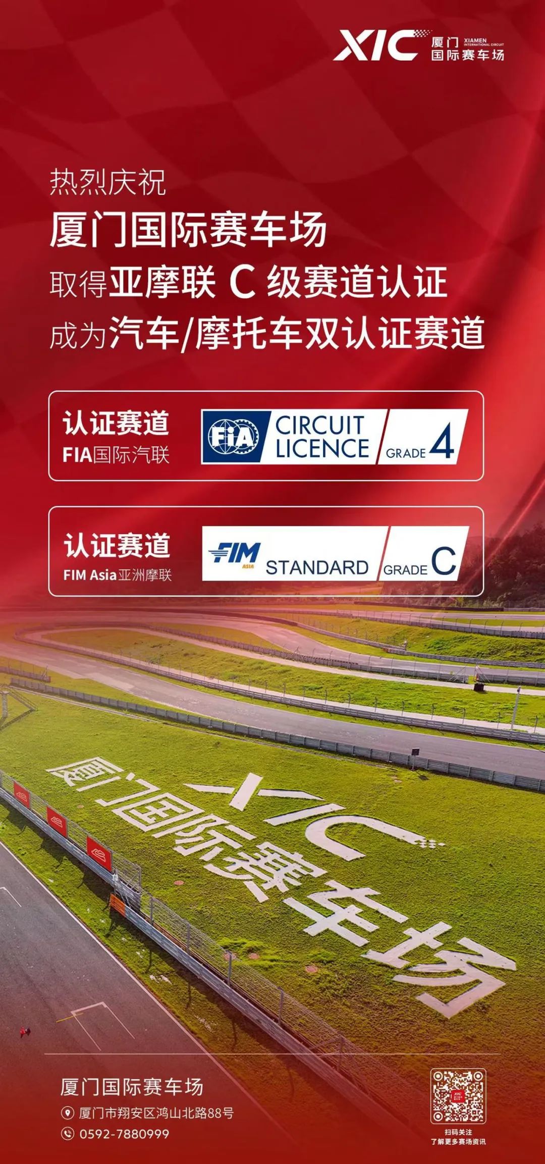 厦门国际赛车场是福建省第一个国际赛车场,也是两岸赛车文化交流和联合赛事举办的重要平台。于2021年7月通过国际汽联(FIA)的四级赛道认证,2025年1月通过亚洲摩联(FIM ASIA)的C级赛道认证。赛道全长1.82公里,共有13个弯道,具有极强的操控性和体验感。赛道另配备11000㎡赛事大楼、15000㎡沥青赛事广场等。已成为海峡西岸广大汽车爱好者感受“速度与激情”、零距离参与汽车、摩托车运动的最佳主场。