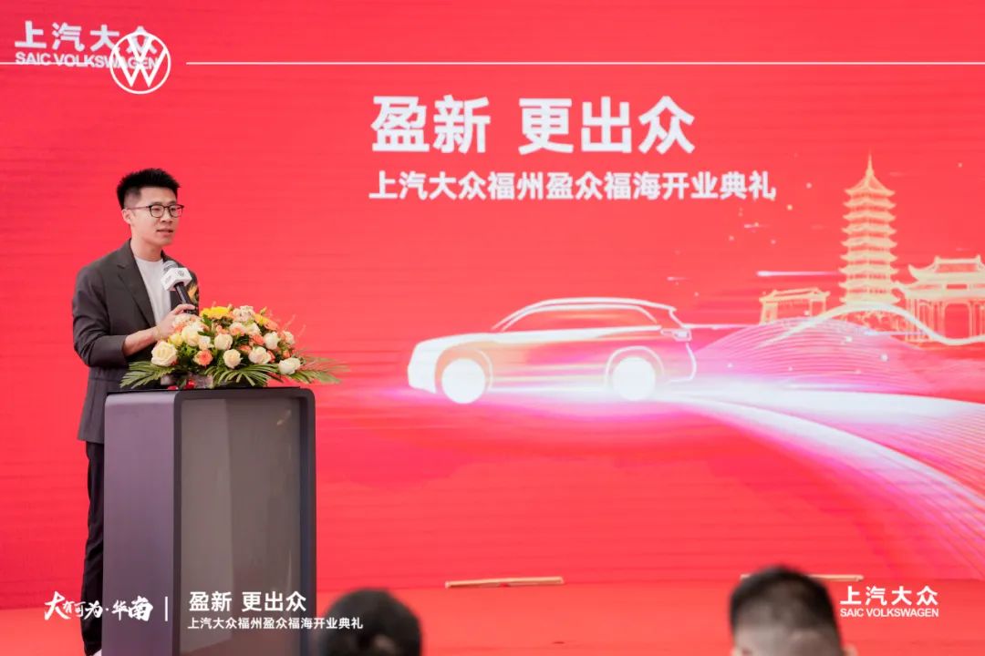 上汽大众华南区总经理徐子看为开业典礼致辞。他指出,上汽大众品牌作为中国汽车行业的领军者,始终坚守“匠心品质 值得信赖”的核心价值,持续提升产品及服务质量。盈众集团是上汽大众忠实的战略合作伙伴,旗下上汽大众展厅已覆盖厦门、泉州、漳州、龙岩、南平等地,今日福州盈众福海的落成,是上汽大众深化区域布局、贴近本地客户需求的重要一步,必将为福州广大消费者带来全新的购车体验与更多的消费选择。