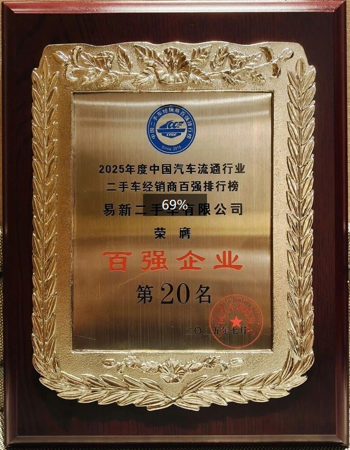 易新二手车入围“2025年度中国汽车流通行业二手车经销商百强排行榜”,位列全国第20名。