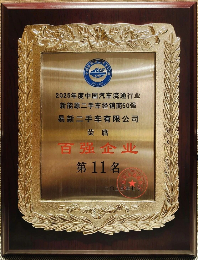同时,易新二手车还上榜“2025年度中国汽车流通行业新能源二手车经销商五十强”,位列全国第11名。